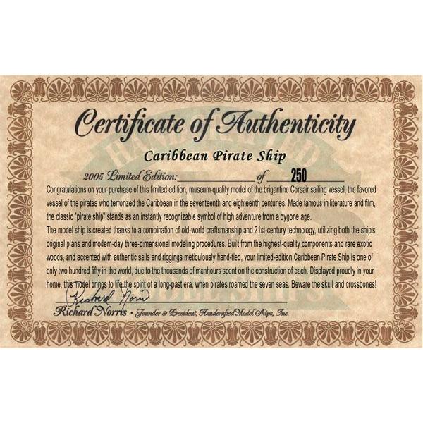 • Certificate of Authenticity individually numbered and signed by HMS Founder and Master Builder Richard Norris